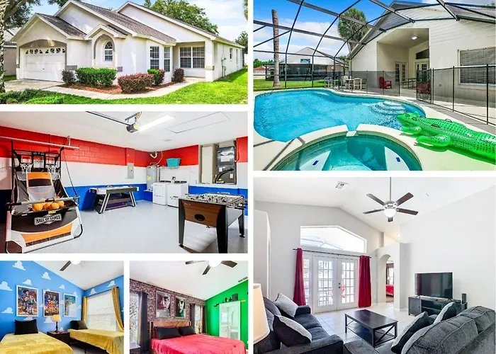 Este lugar está equipado con lavaplatos, cafetera/tetera y un horno para cocinar en una zona de comedor. A esta villa se llega en coche en 38 minutos desde el aeropuerto Internacional de Orlando.